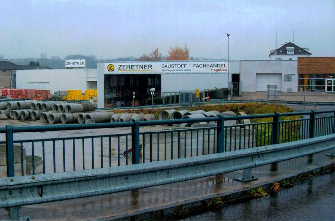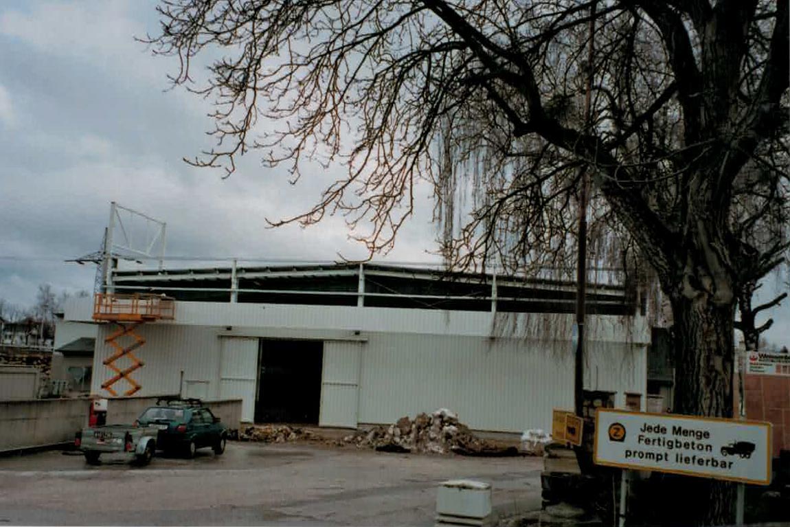 1996 - Errichtung von 3000 m² Baustofflagerhallen am Standort Amstetten, beim Kreisverkehr Zehetner in der Ybbsstraße.