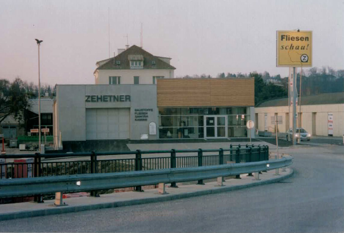 2003 - Neubau des Fliesen- und Sanitärcenters mit einem 1500 m² Schauraum und 2500 m² Lagerhalle in der Ybbsstraße 66 in Amstetten.